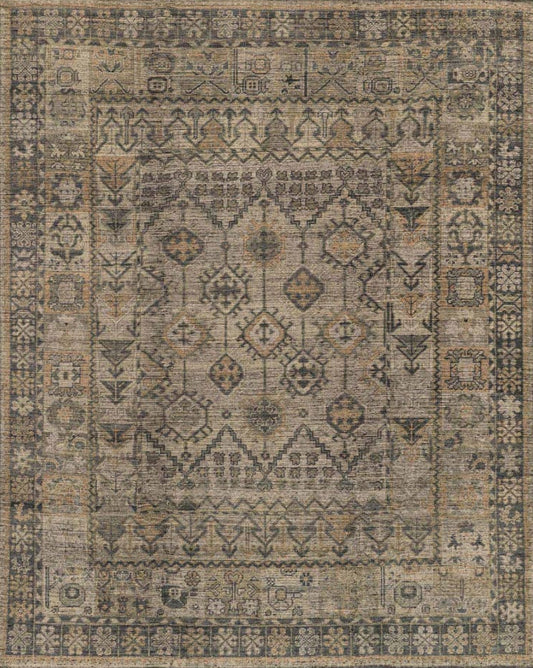 Hand-Knotted Emerson Wool Carpet – Warm White, Tribal Design, Vintage Style Rug for Living Room