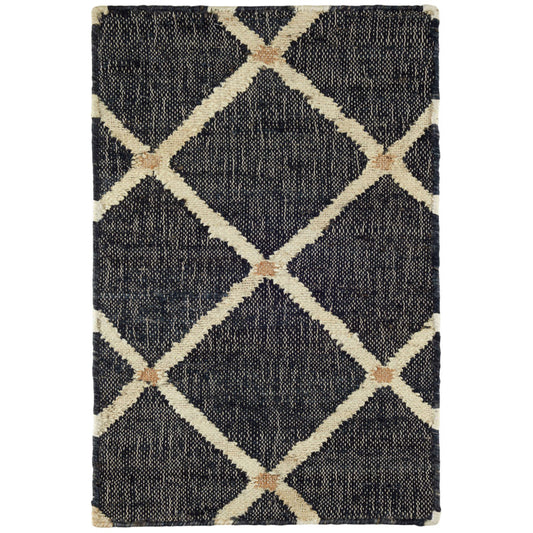 Black & Ivory Diamond Design Wool & Jute Flatweave Area Rug – Handwoven