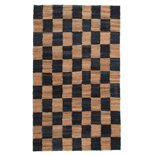 Modern Checkerboard Wool & Jute Rug in Black and Brown – Handwoven Flatweave
