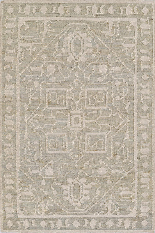 Artisan Flatweave Wool & Jute Rug in Neutral Ivory with Classic Medallion Pattern