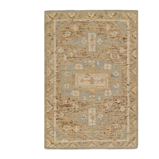 This exquisite handwoven wool and jute rug features a classic medallion pattern in serene beige...