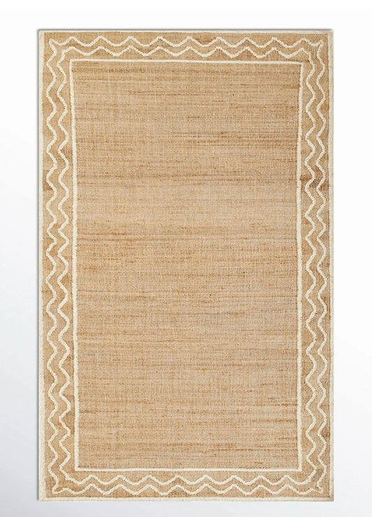 Natural Jute Area Rug – Handwoven Flatweave with Decorative Ivory Zigzag Edge