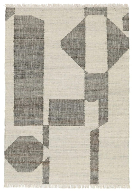 Modern Geometric Block Flatweave Rug – Handwoven Wool & Jute in Gray and Ivory Tones