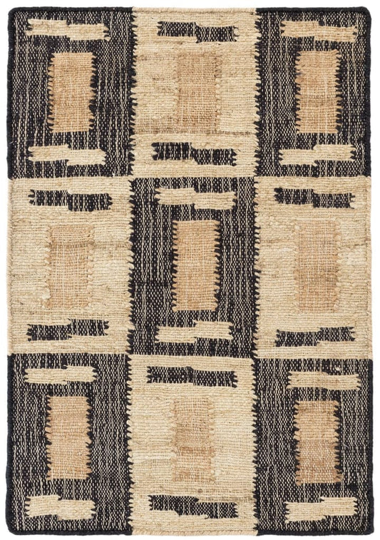 Natural & Black Checkered Flatweave Rug – Handwoven in Jute and Wool