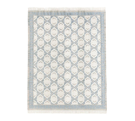 Premium Handwoven Wool & Jute Flatweave Rug – Blue & Ivory Geometric Design