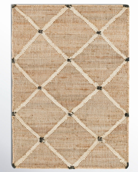 Handwoven Jute & Wool Rug with Geometric Diamond Pattern - Natural & Black