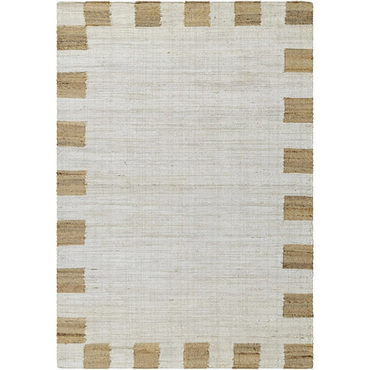 Handwoven Jute & Wool Rug with Minimalist Border Design - Natural, Beige & Brown