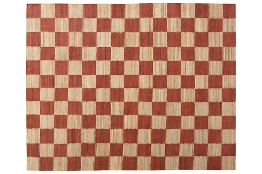Handwoven Jute & Wool Rug – Terracotta & Natural Checkered Pattern