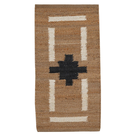 Handwoven Jute & Wool Runner Rug – Black with Gold & White Cross Pattern
