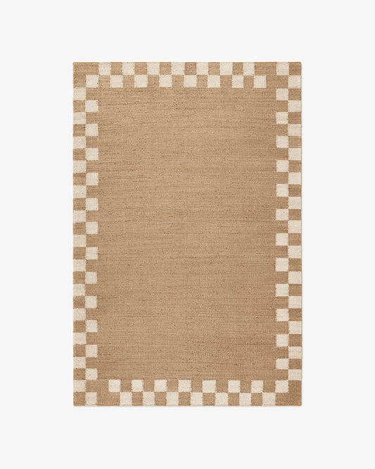 Handwoven Jute & Wool Rug with Diamond Pattern - Natural & Ivory