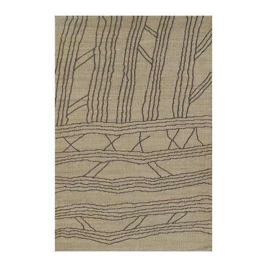 Handwoven Wool & Jute Rug with Abstract Linear Pattern – Natural & Black Flatweave