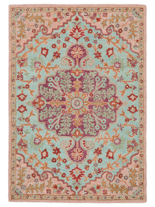 Handmade Wool & Silk Tufted Rug Floral Botanical Design Green Carpet