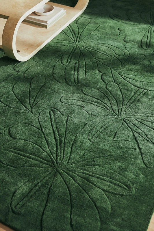 Hand-Tufted Wool Rug Sculpted Daisy Floral Green Modern Carpet Home Decor