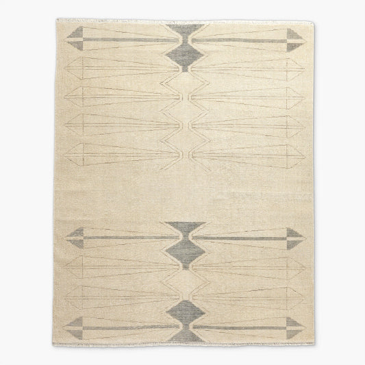 Minimalist Handwoven Rug – Jute & Wool Flatweave with Modern Abstract Pattern in Beige and Ivory