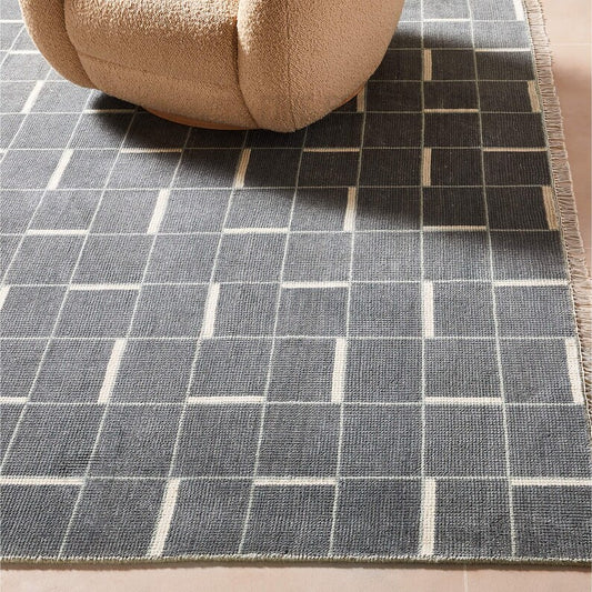 Modern Checkerboard Wool & Jute Rug in Black and Brown – Handwoven Flatweave