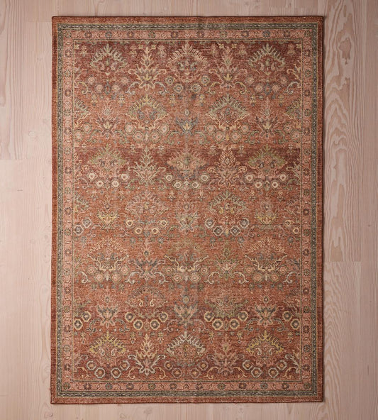 Rust Red Hand-Knotted Oushak Rug – Vintage Turkish Wool Carpet with Floral Medallion Design