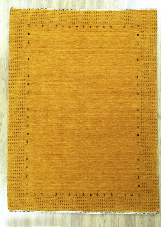 Elegant Hand-Knotted Gabbeh Rug - Warm Amber Hue with Intricate Borders