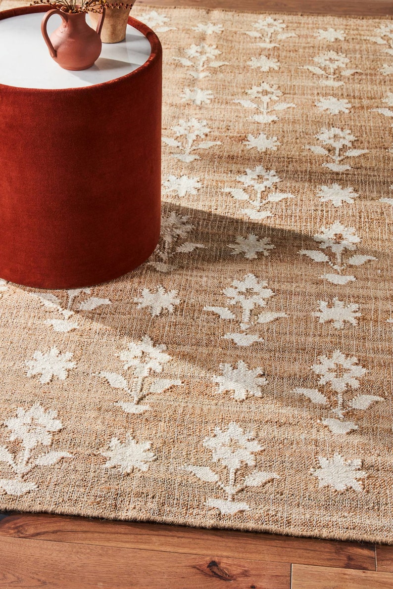 Elevate your interiors with this exquisitely handwoven jute and wool rug, featuring a delicate floral pattern in natural and ivory tones. Thoughtfully crafted, this flatweave rug combines rustic charm with timeless elegance, making it a stylish yet practical addition to any space. Its flatweave construction ensures durability and a lightweight feel, ideal for high-traffic areas such as living rooms, bedrooms, and entryways. The natural jute fibers offer a rich, organic texture, while the soft ivory floral motifs provide a subtle contrast that enhances the overall aesthetic. Versatile and refined, this rug complements a wide range of interior styles—from classic to contemporary—and brings warmth, texture, and sophistication to your home.