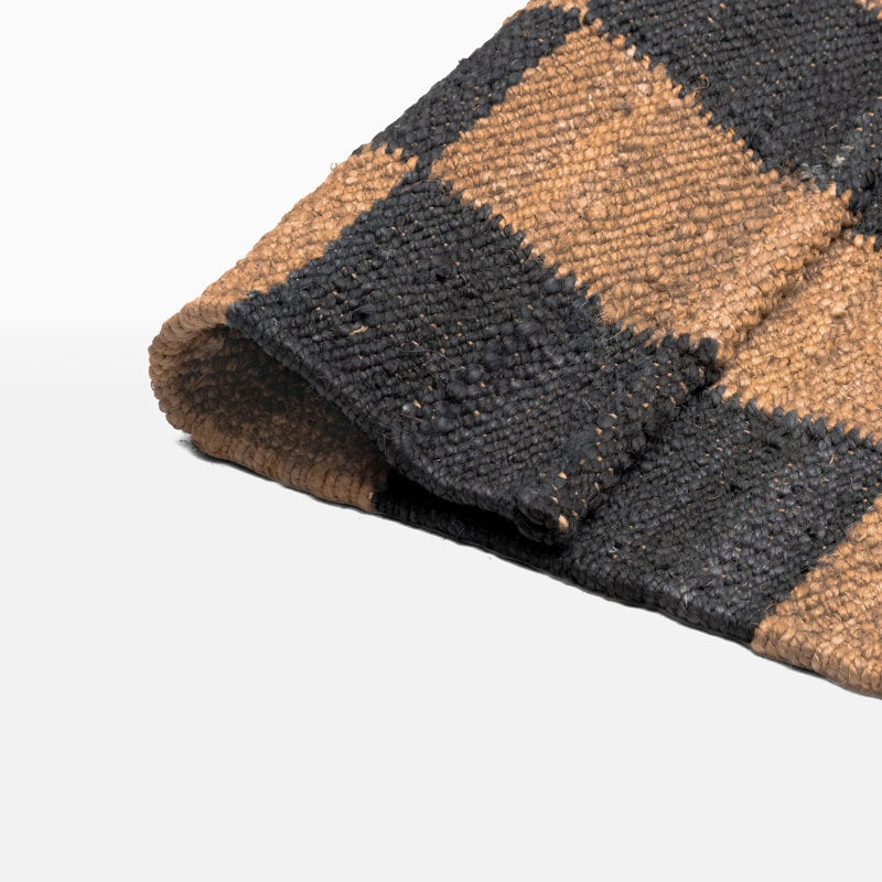 Modern Checkerboard Wool & Jute Rug in Black and Brown – Handwoven Flatweave