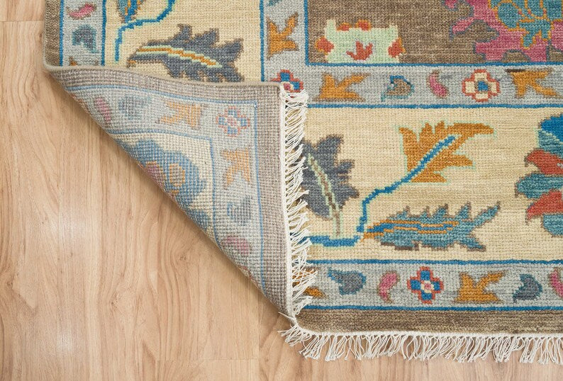 Peanut Brown Contemporary Turkish Oushak Rug | Soft Wool Area Rug for Kids’ Spaces
