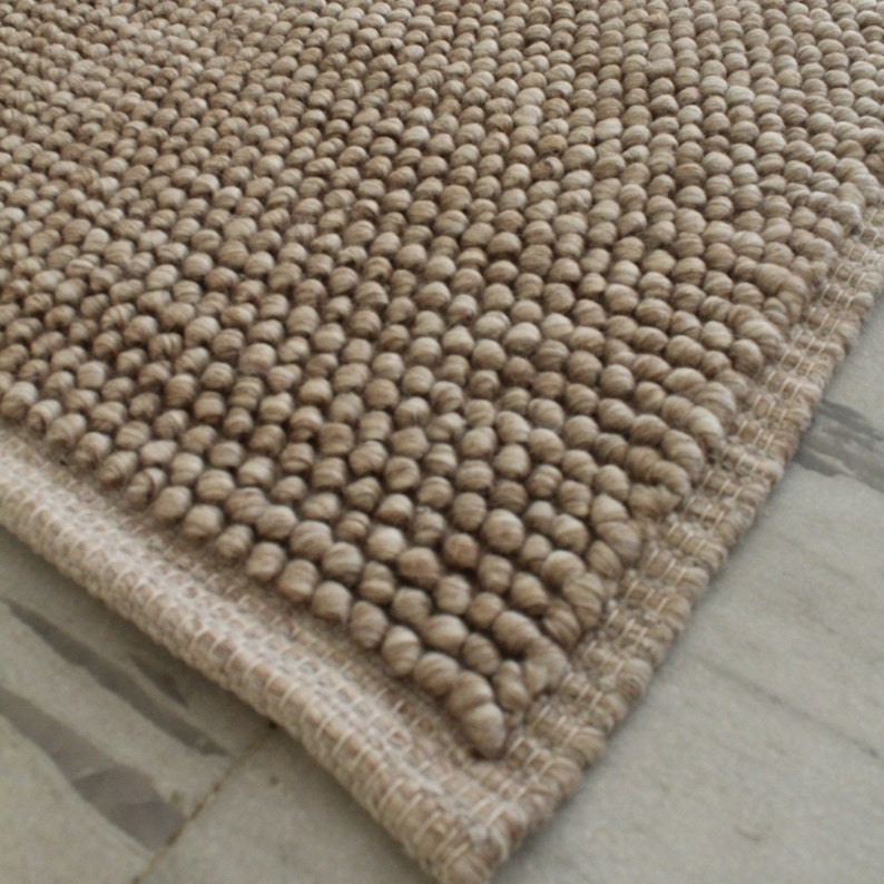 Cozy Beige Wool Rug with Custom Options - Handwoven Chunky Loop Style Beige / Cream