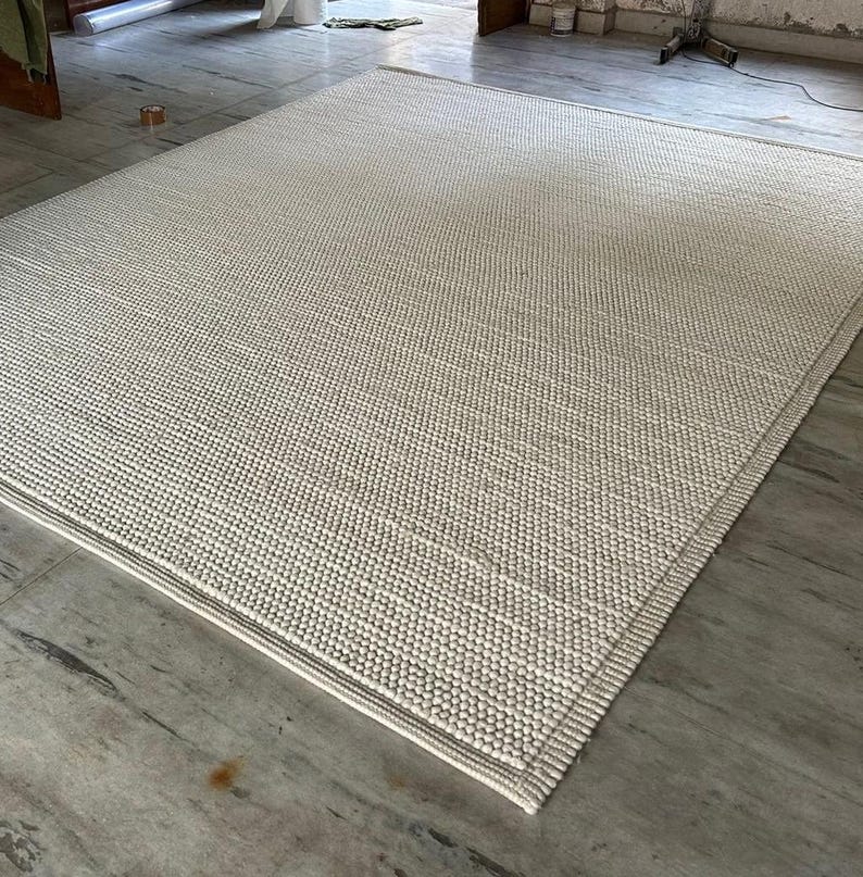 Whether you're seeking to create a calm, serene space or want a standout textured piece, this handwoven wool rug is a versatile and lasting choice. Each rug is made with care by skilled artisans, ensuring quality and uniqueness in every piece.