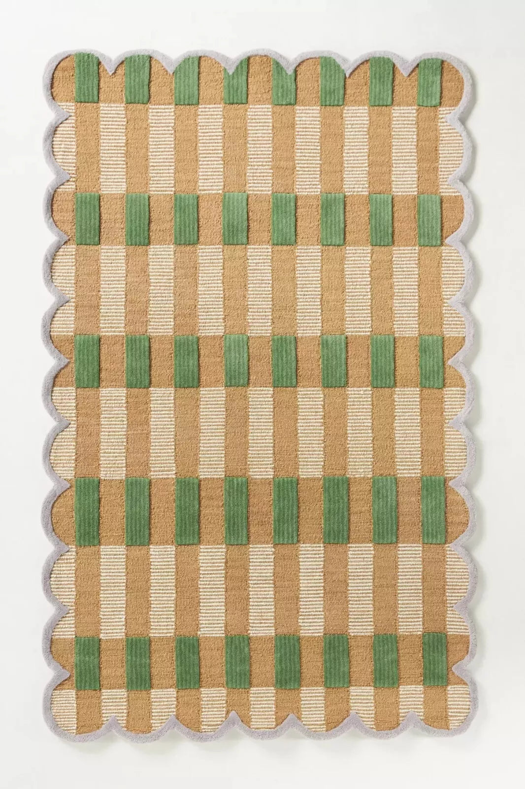 Vintage Wool Plaid Green Tufted Rug by Anthropologie - Handmade Wool Area Rug