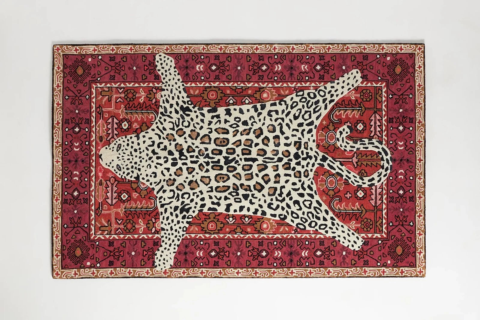 Octavia Leopard Red Modern Hand-Tufted 100% Wool Area Rug Carpet