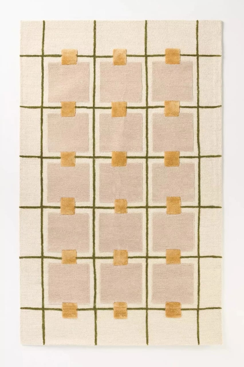 Greer Hand-Tufted Wool Viscose Rug | Geometric Grid with Raised Squares Design