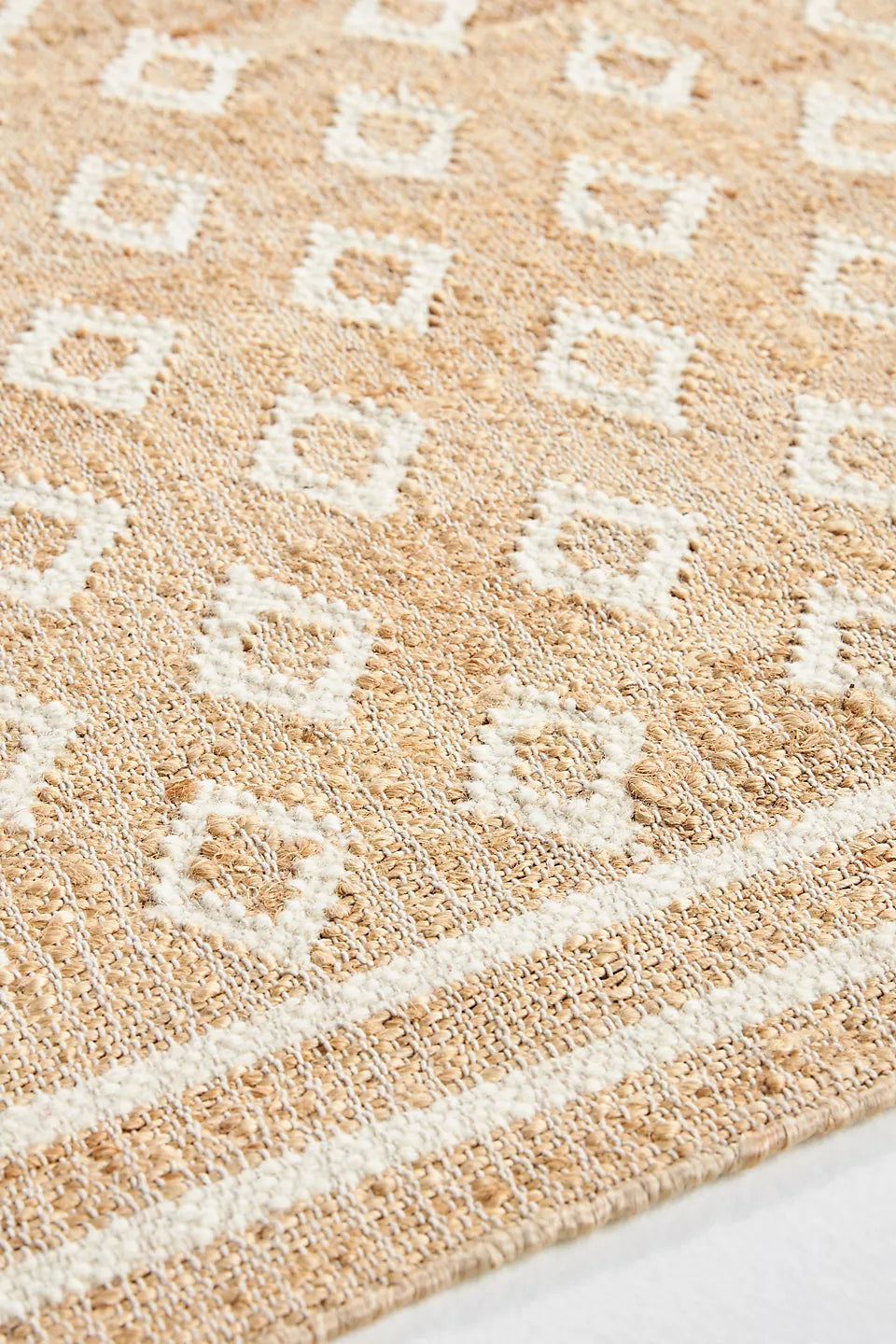 Handwoven Jute & Wool Rug with Diamond Pattern - Natural & Ivory