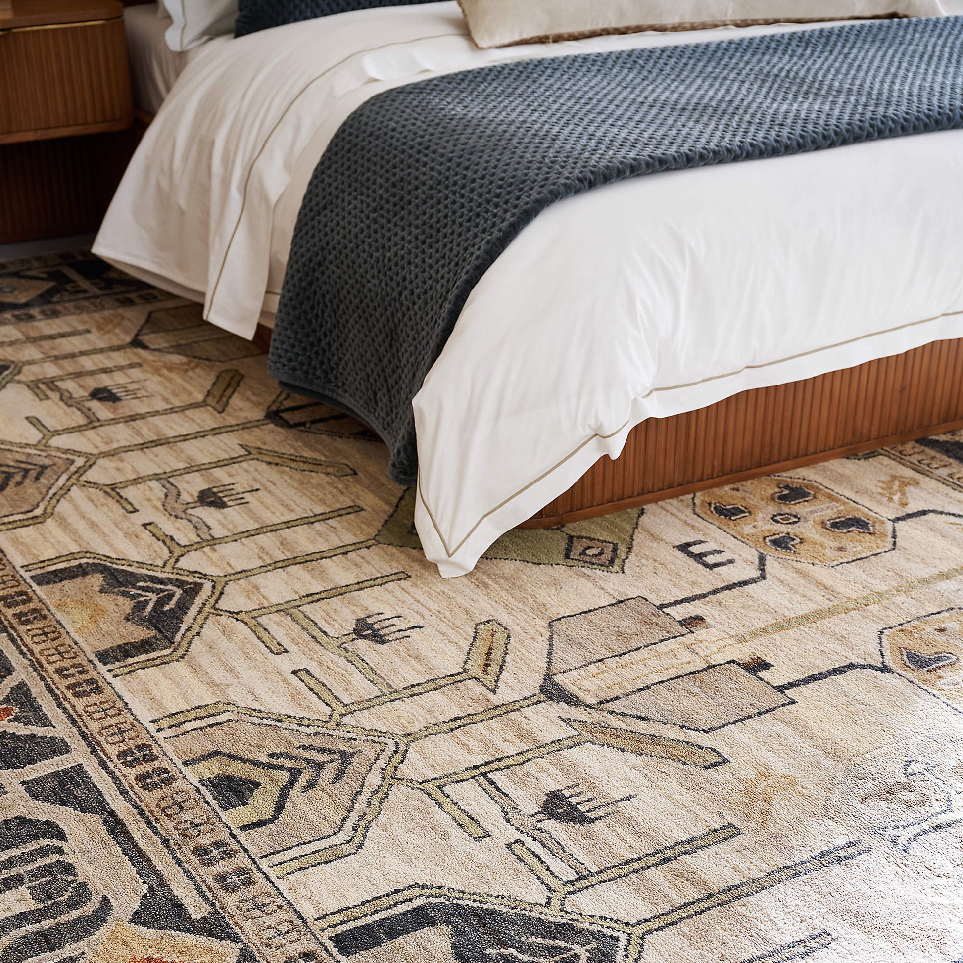 Shedding: Wool rugs may shed initially as loose fibres are released because they are newly made. Shedding is natural and diminishes over time with regular care.