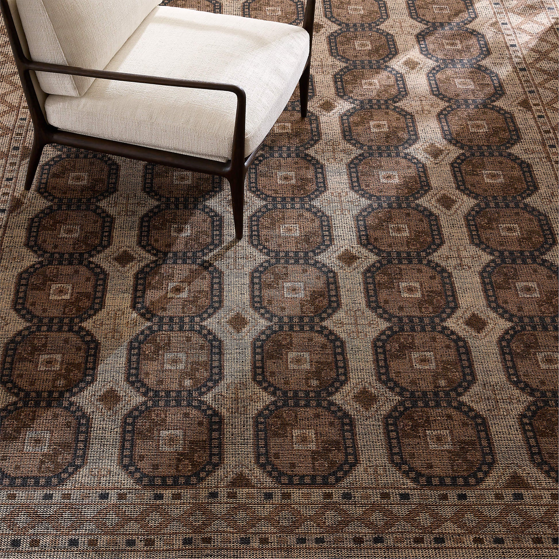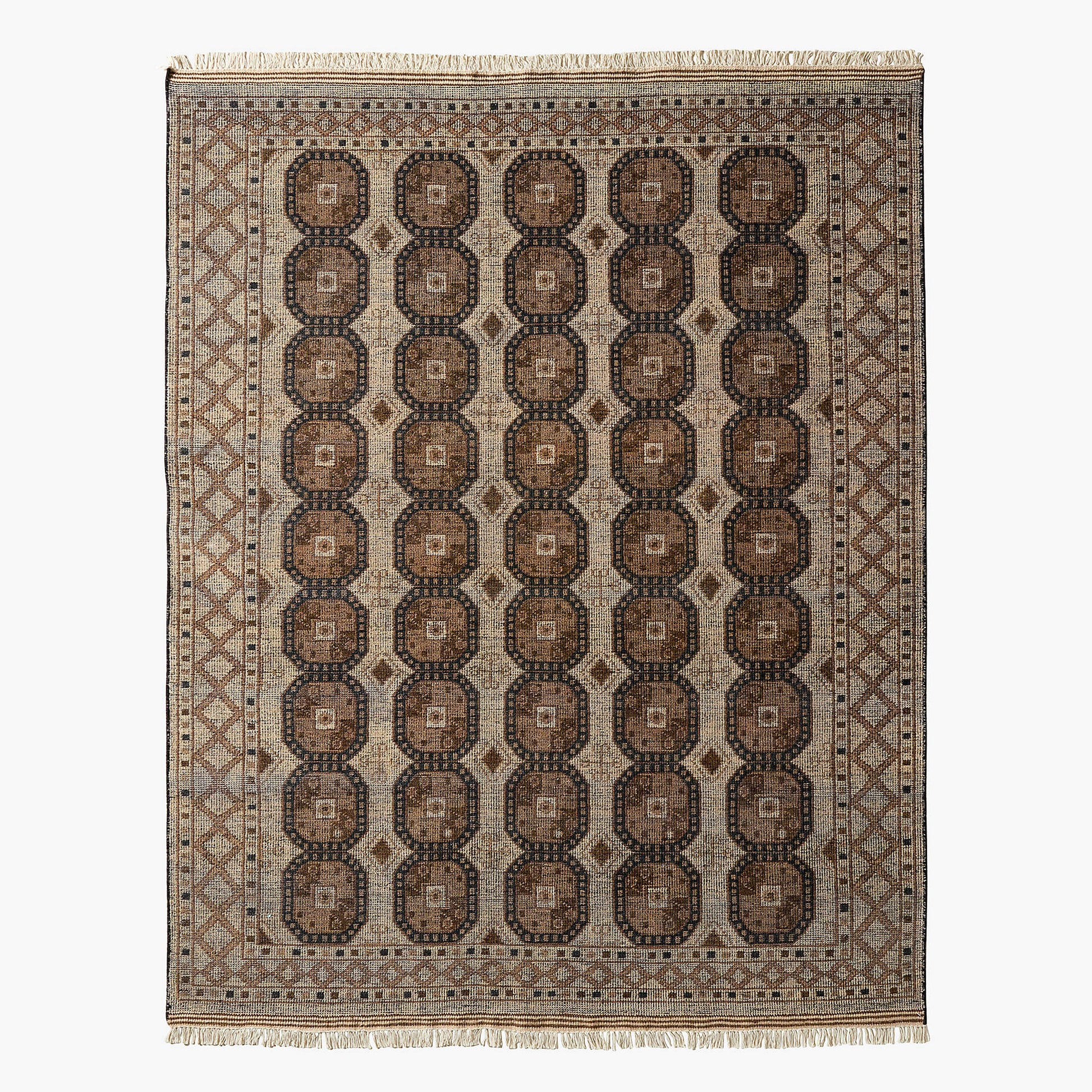 Hand-Knotted Pascala Taupe Wool Rug – Traditional Oriental Design with Vintage-Inspired Geometric Pattern