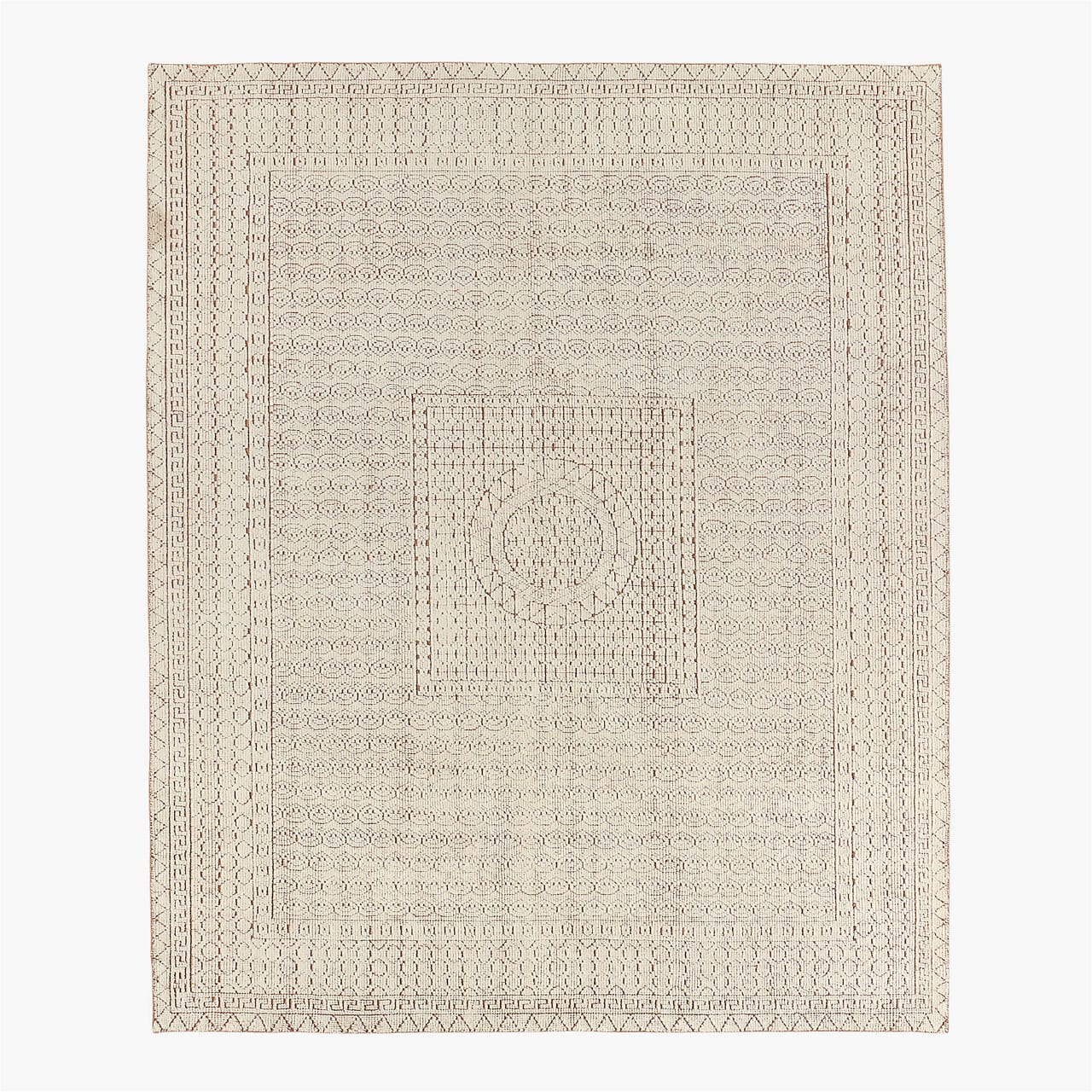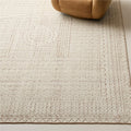 Hand-Knotted Calero Wool Rug – White Geometric Boho-Inspired Carpet, Modern Ethnic Statement Piece