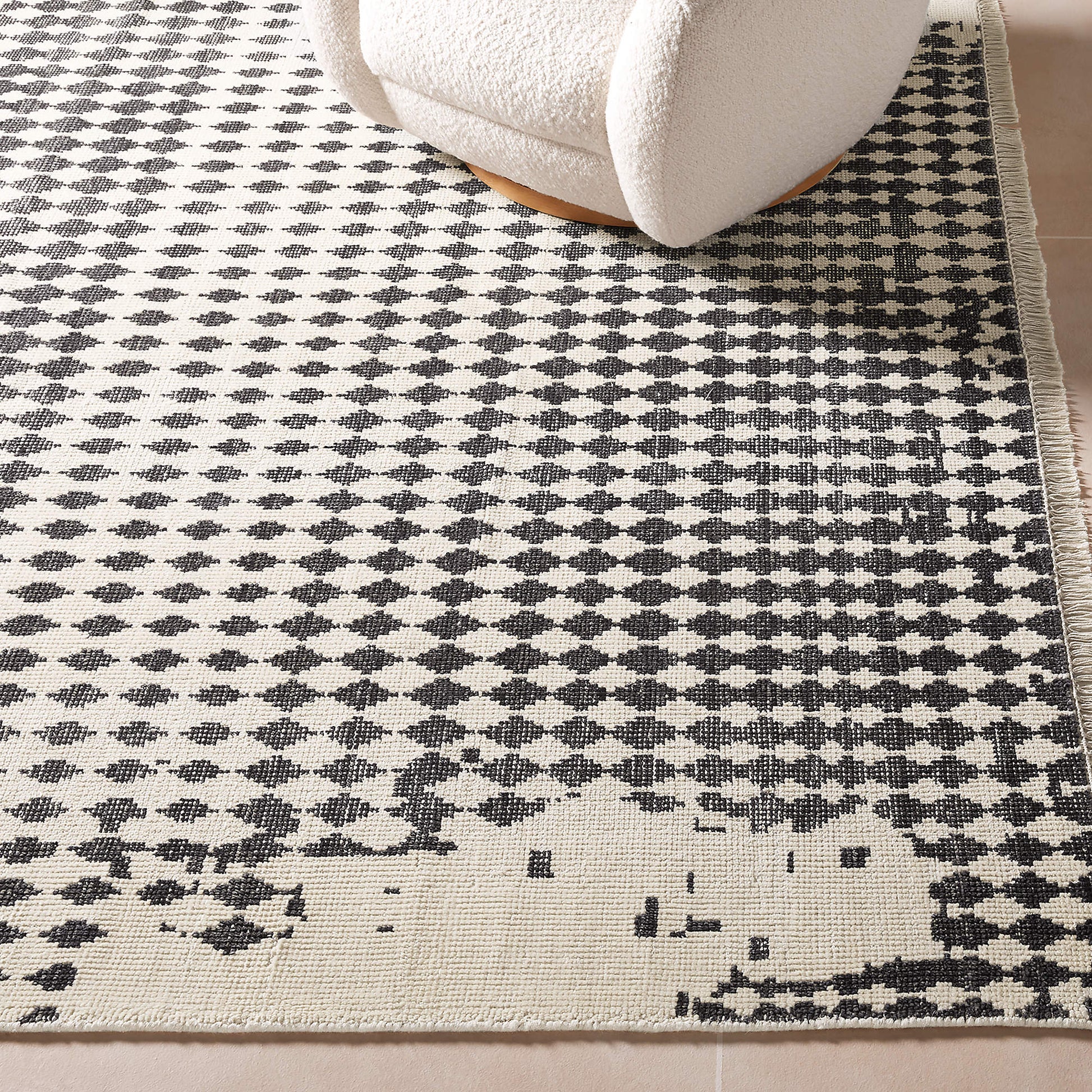 Shedding: Wool rugs may shed initially as loose fibres are released because they are newly made. Shedding is natural and diminishes over time with regular care.