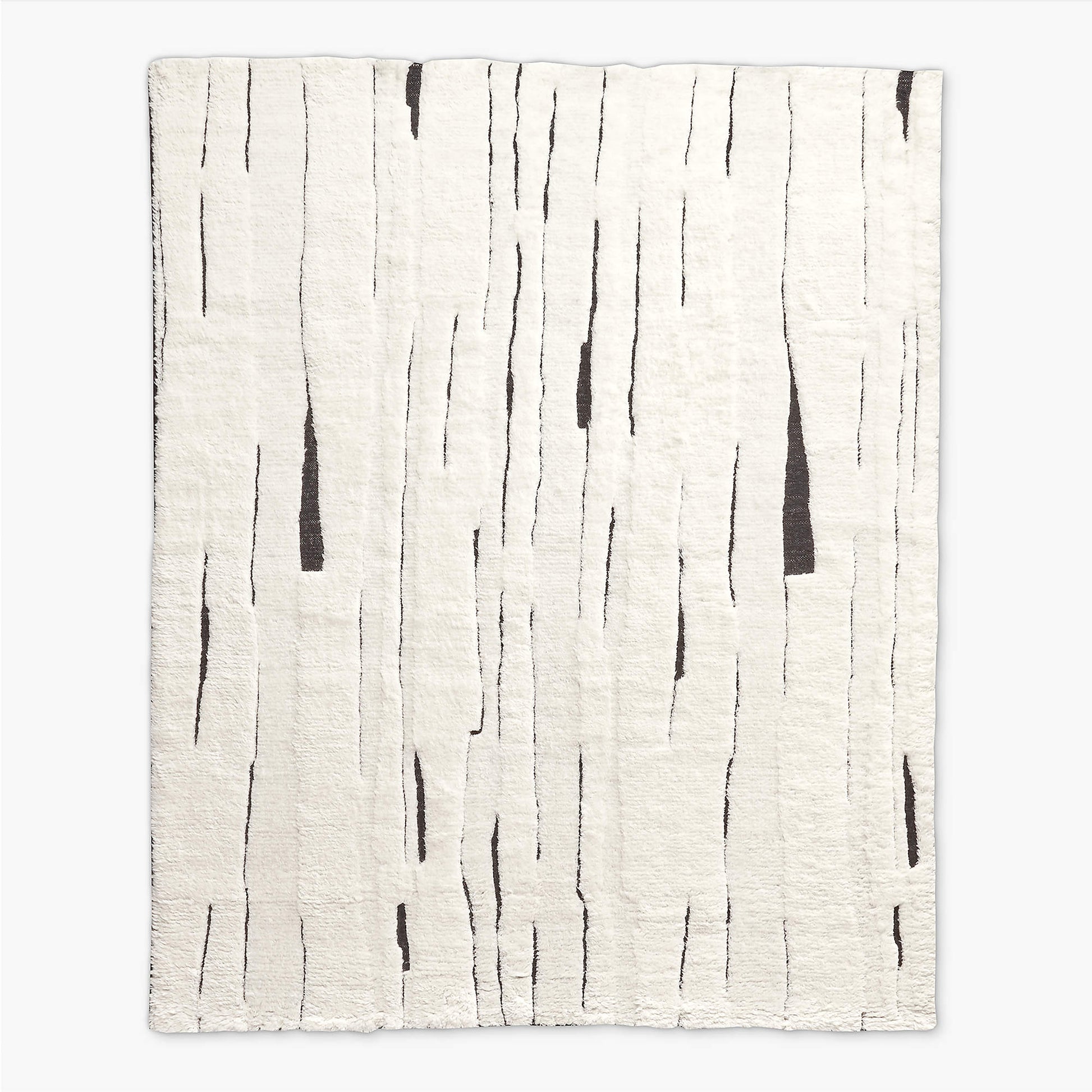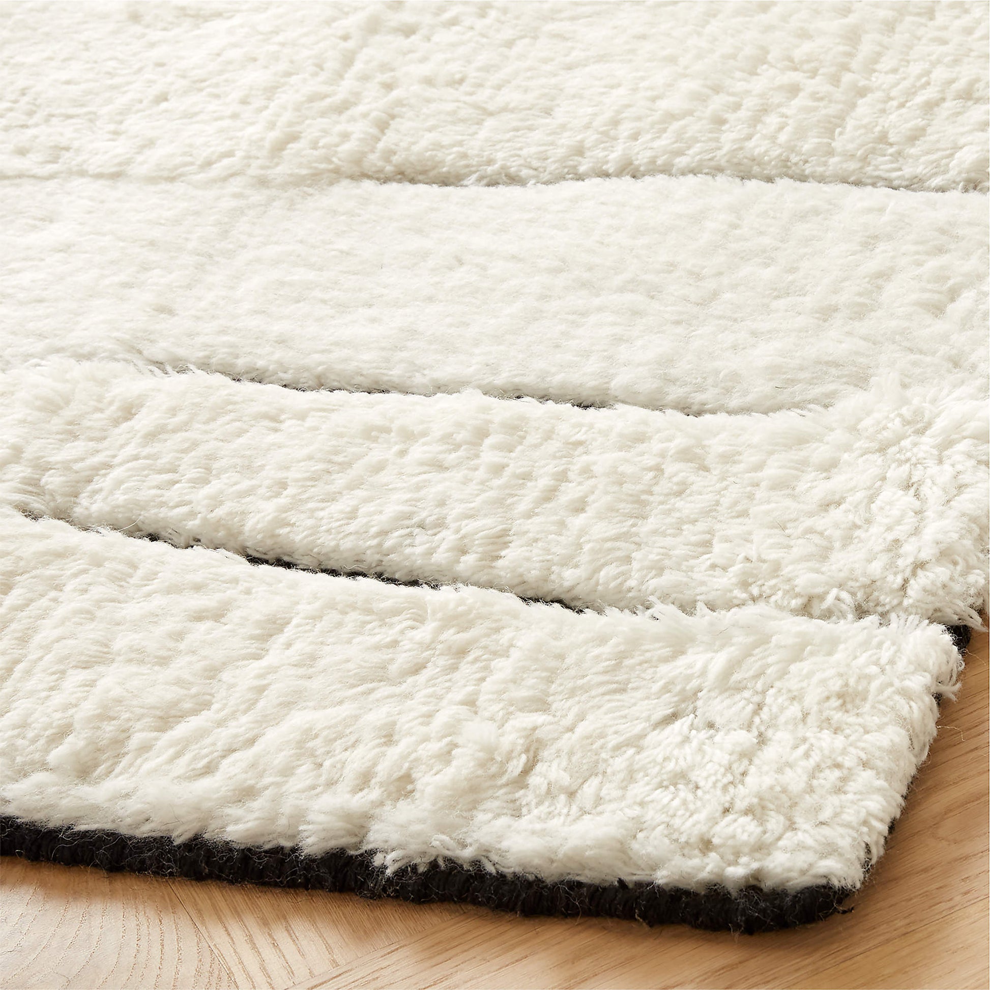 Hand-Knotted Carena Wool Rug – White and Black Moroccan-Inspired Berber Carpet, Contemporary Linear Pattern Area Rug