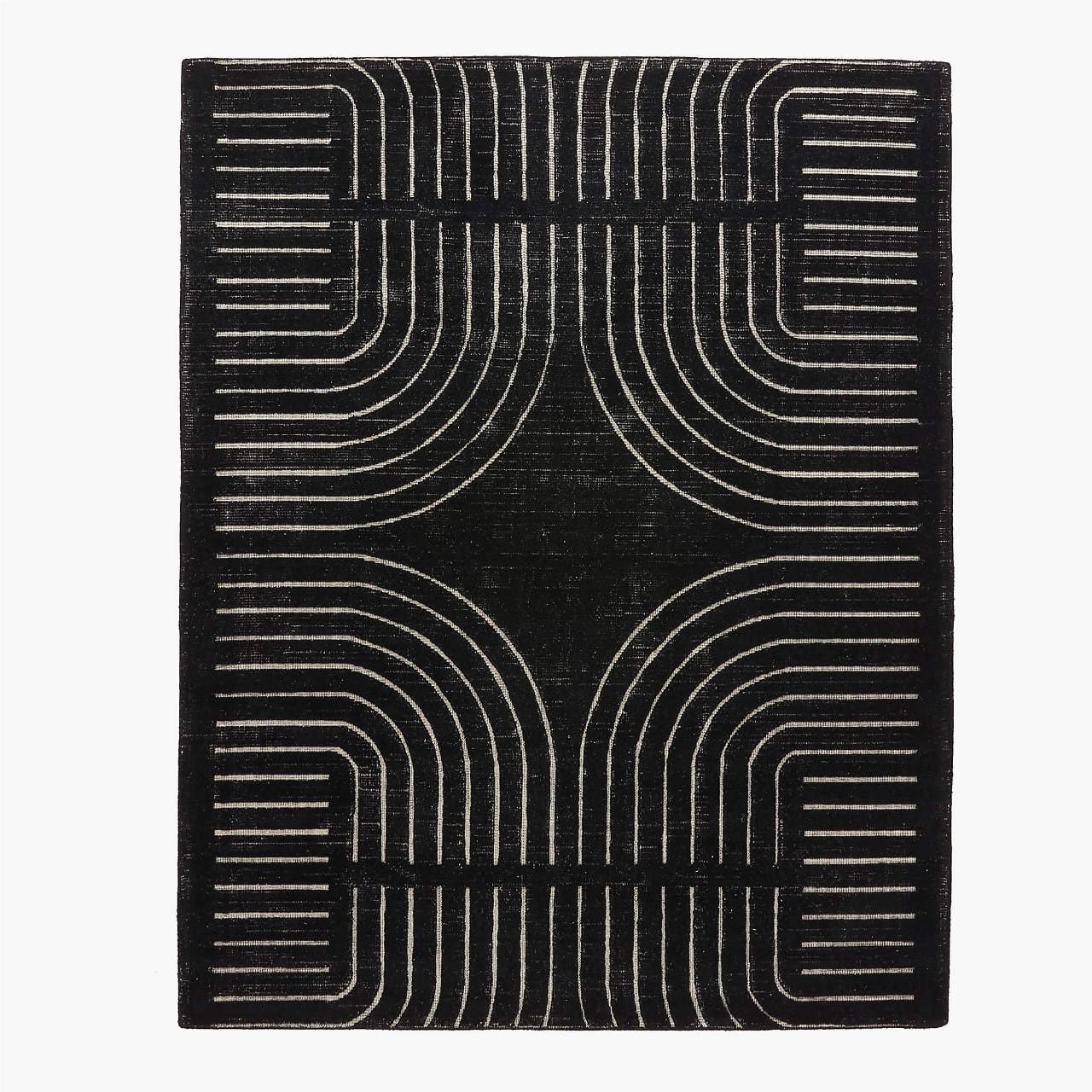 Hand-Knotted Asti Rug – Black & White Wool Carpet, Contemporary Minimalist Geometric Arch Pattern