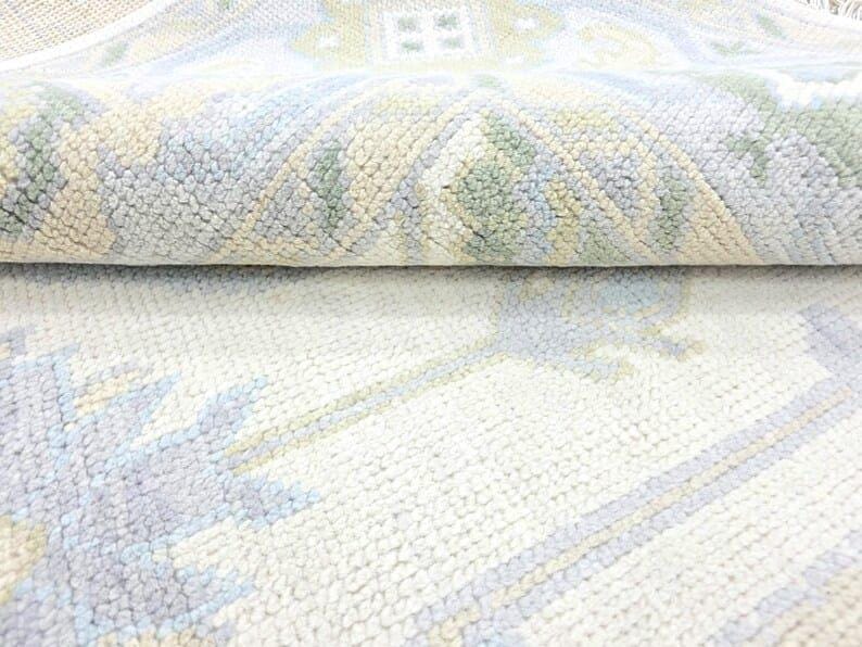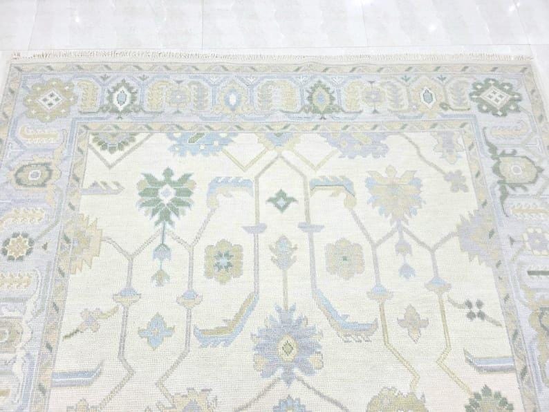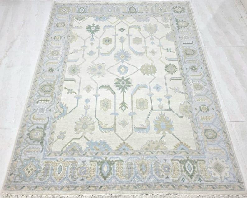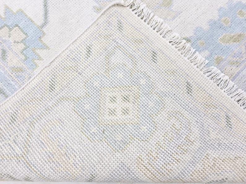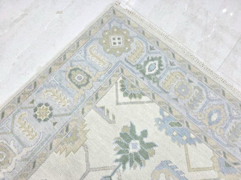 Experience timeless craftsmanship and serene beauty with the Soft Blue and Sage Green Hand-Knotted Oushak Rug, a masterpiece of Turkish-inspired artistry. Meticulously woven by skilled artisans, this rug showcases the intricate charm of traditional Oushak design, reimagined in soothing contemporary tones. Crafted from premium quality wool, the rug features a soft blue base accented with gentle sage green motifs, evoking the calm elegance of vintage Anatolian interiors. Each knot reflects dedication and precision, resulting in a piece that is not only visually stunning but also durable, plush, and heirloom-worthy.