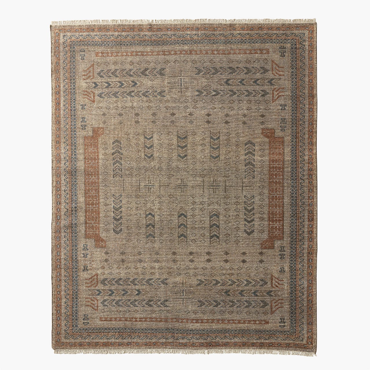 Orin Brown & Rust Hand-Knotted Wool Rug – Traditional Tribal Pattern, 8x10
