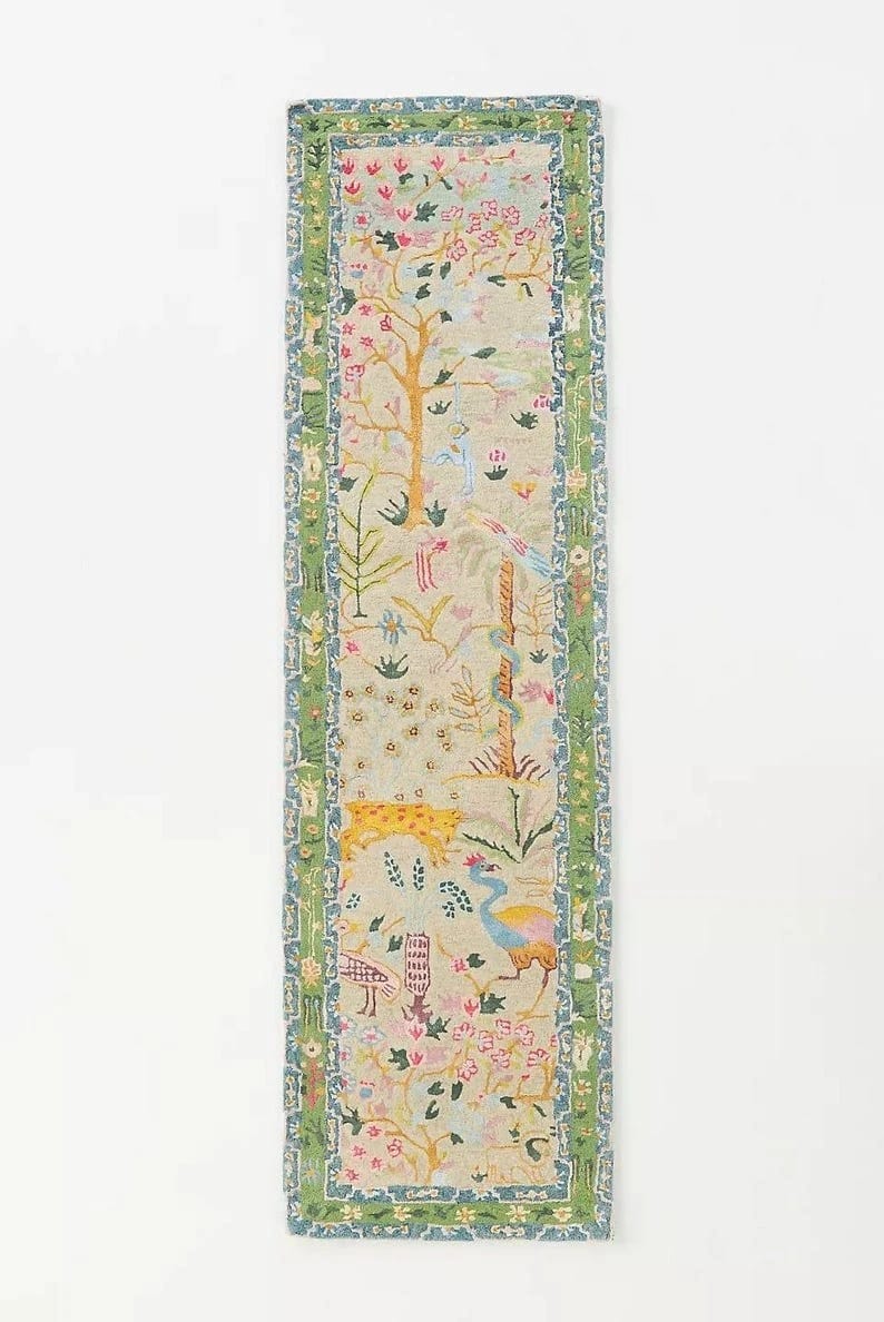 Hand-Tufted Pictorial Wool Rug – Hunting Scene & Jungle Garden Design, Vintage Persian-Inspired Animal Carpet