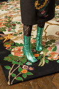 The detailed pictorial motifs symbolize life, harmony, and nature’s beauty, making this rug not just a floor covering but a timeless work of art. Its bold contrast and intricate design make it a perfect statement piece for living rooms, dining spaces, or luxurious bedrooms.