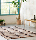 Luxury Hand Tufted Abstract Grid Wool Rug with Organic Statement Rug for Living Room Decor