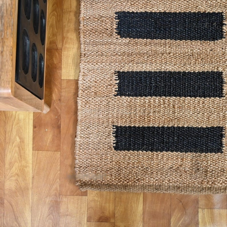Artisan Handwoven Runner Rug – Natural Jute & Wool Blend with Bold Black Stripes