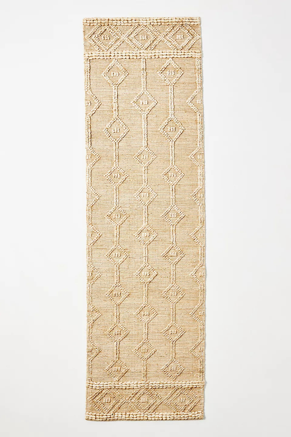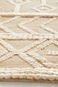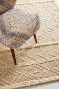Natural Ivory Jute & Wool Rug – Handwoven Flatweave with Geometric Chevron and Diamond Design