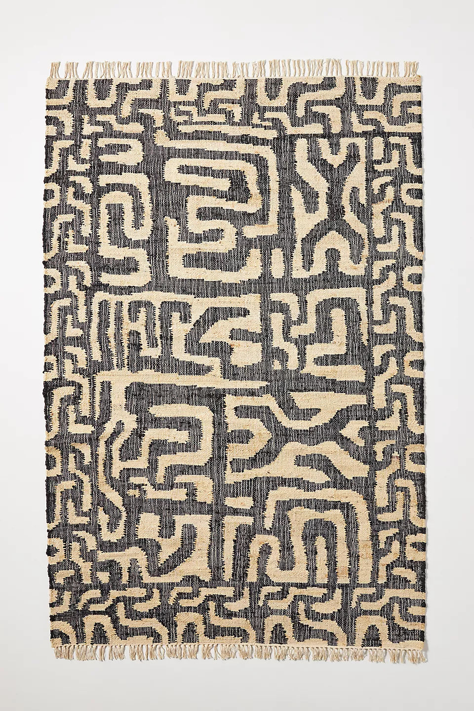 Modern Flatweave Jute & Wool Rug – Handwoven with Abstract Maze Motif in Beige & Natural