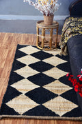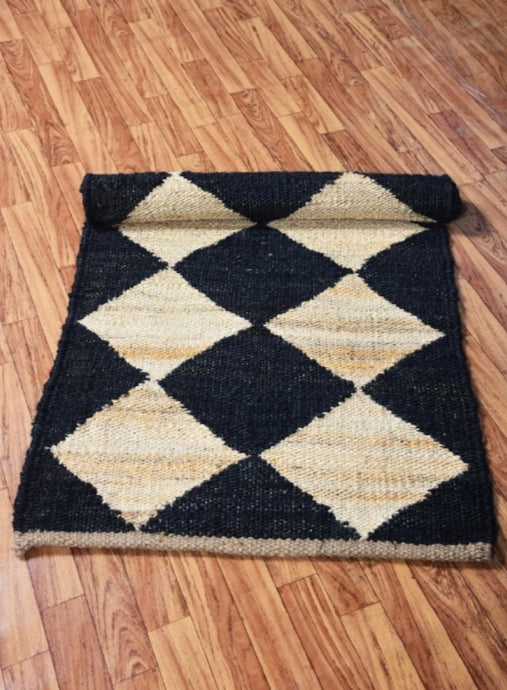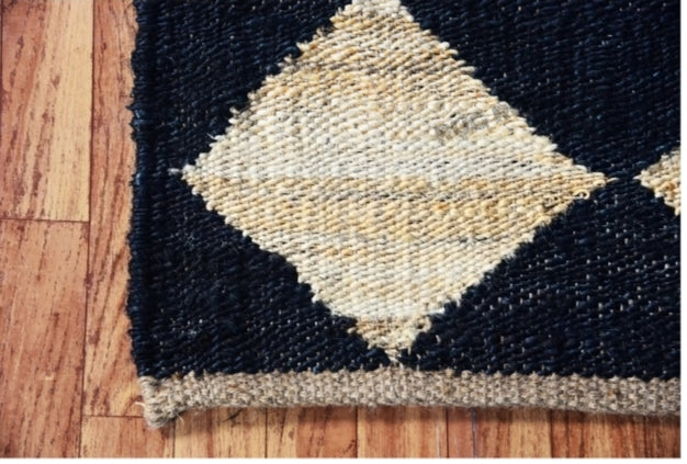 Artisan Jute Rug – Flatweave Design with Bold Black and Natural Diamond Motif