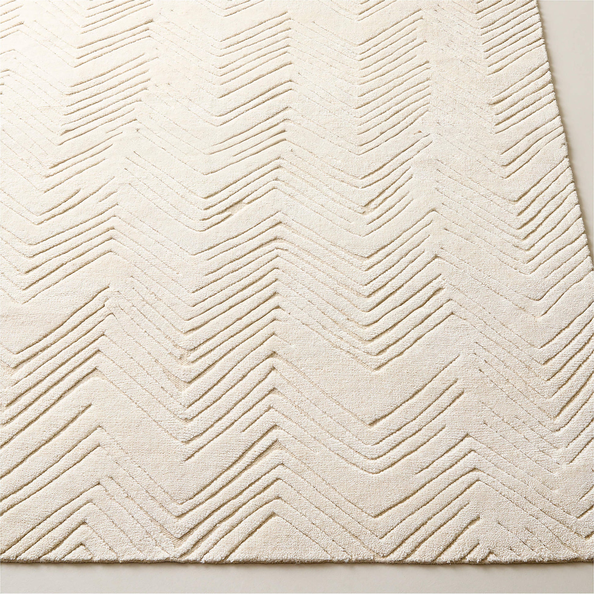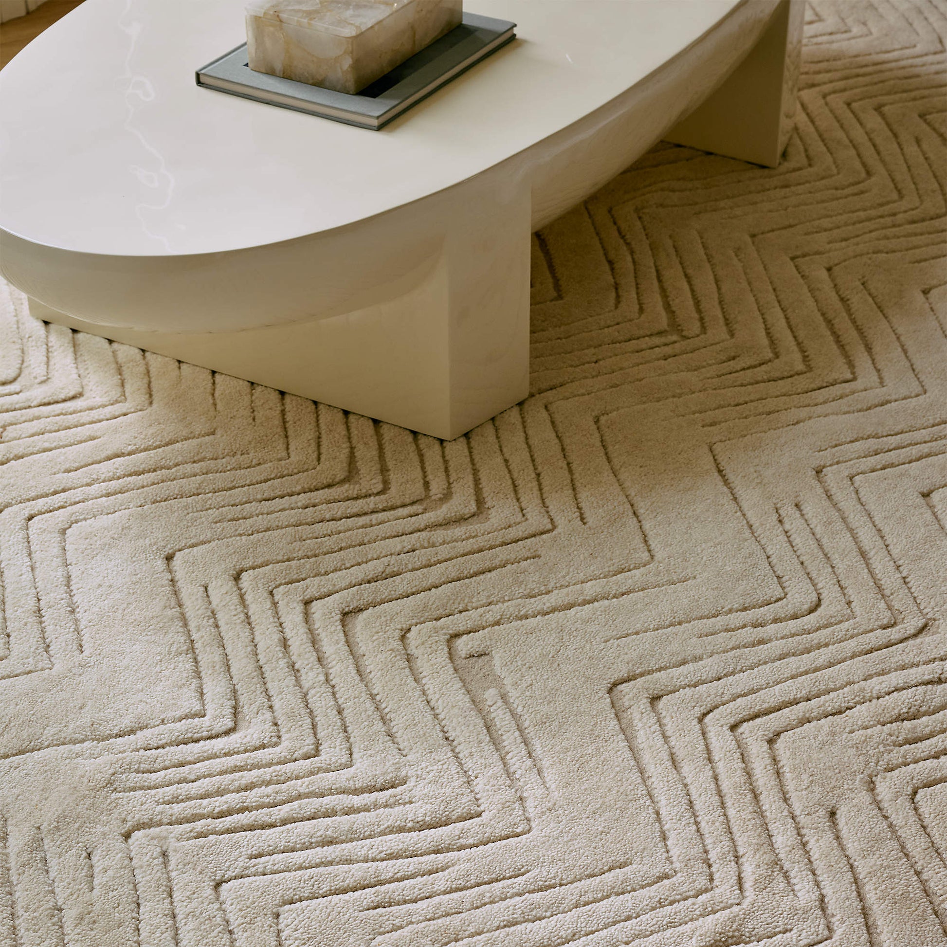 Hand-Knotted Jace Warm White Zig-Zag Viscose Rug – Contemporary Luxury for Modern Living Spaces