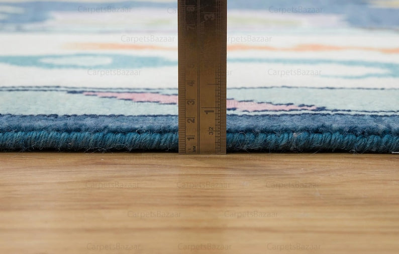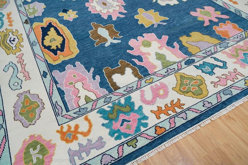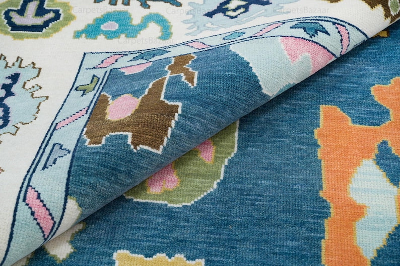 Add a vibrant touch of elegance to your home with this Handmade Contemporary Oushak Rug, designed to bring color, texture, and character to any space. Perfect for themed interiors, bedrooms, kids’ rooms, or farmhouse-style living areas, this rug blends traditional craftsmanship with a fresh, modern aesthetic. Hand-knotted in India from 100% premium wool, it features a soothing blue field framed by a rich pearl-white border, accented with playful touches of pink and orange. The combination of soft tones and lively highlights creates a balanced, eye-catching design that complements a variety of décor styles. Durable, comfortable, and uniquely crafted, this rug is more than just a floor covering—it’s a statement piece that adds warmth, charm, and personality to your home.