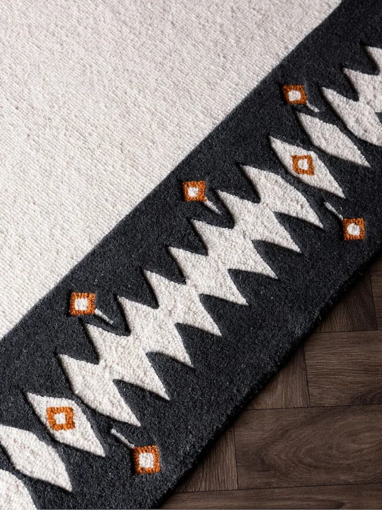 Minimalist Hand Tufted Wool Area Rug with Southwestern Geometric Edge for Contemporary Home Decor