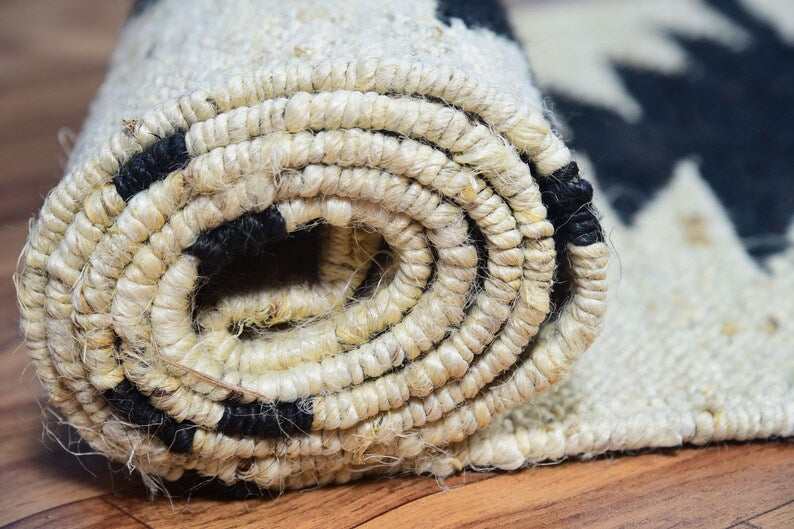 Add a bold and unique touch to your space with this handwoven jute runner rug, featuring a striking black zigzag tribal pattern on a natural beige backdrop. Crafted from eco-friendly jute fibers, this flatweave rug offers durability and style, making it perfect for hallways, entryways, or as an accent piece in any room. The intricate design is skillfully handcrafted by artisans, ensuring each rug is a one-of-a-kind addition to your home decor. Its neutral tones and geometric pattern blend seamlessly with bohemian, modern, or rustic interiors.
