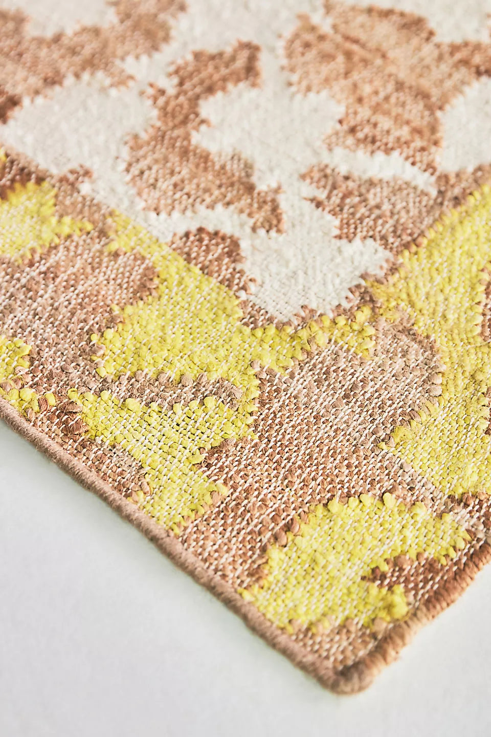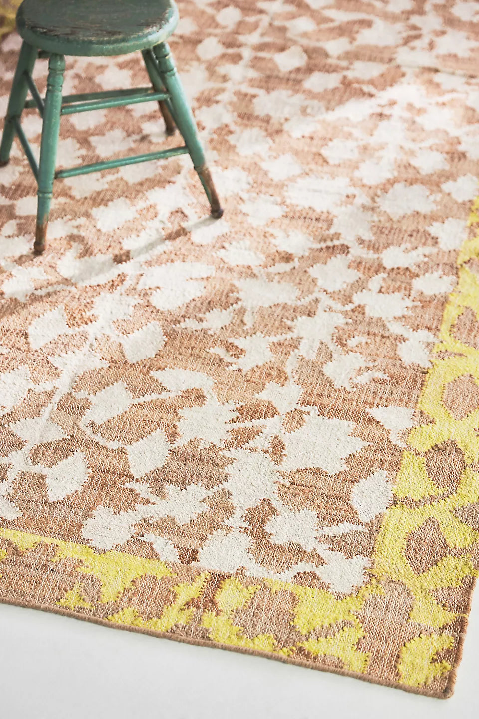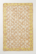 Handwoven Jute & Wool Rug with Floral Border Design - Natural, Yellow & Ivory